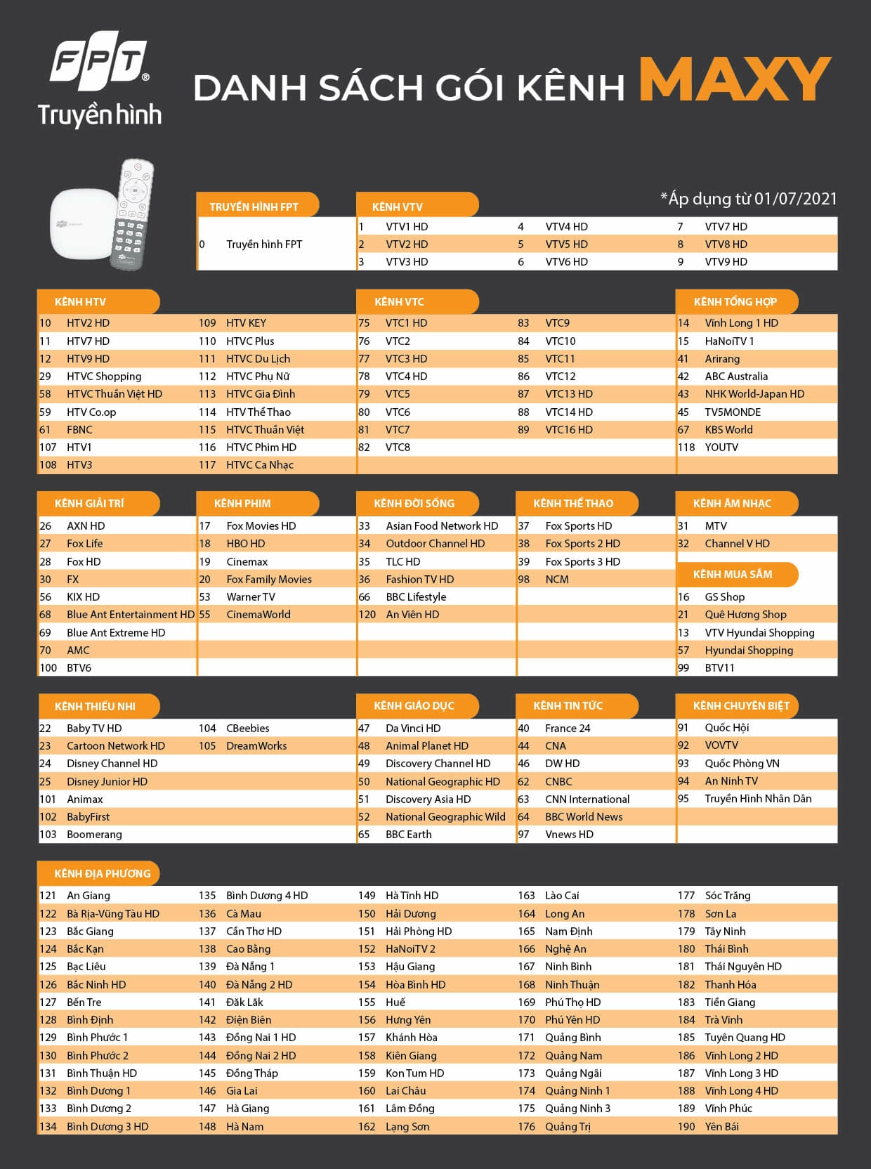 - 50+ kênh chuẩn HD